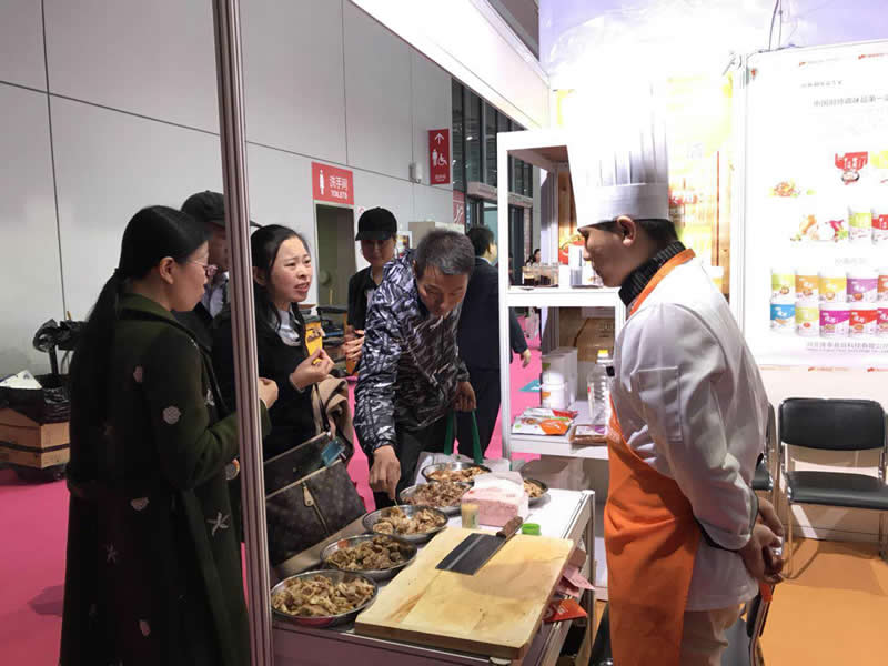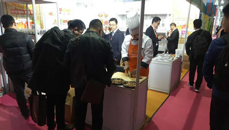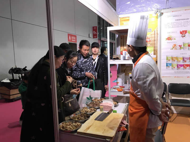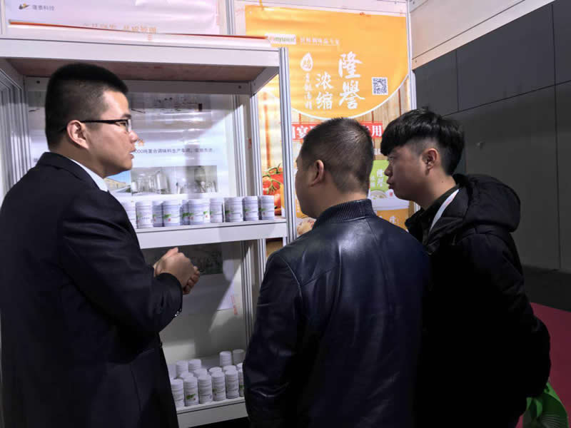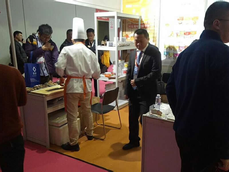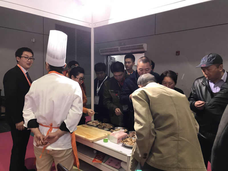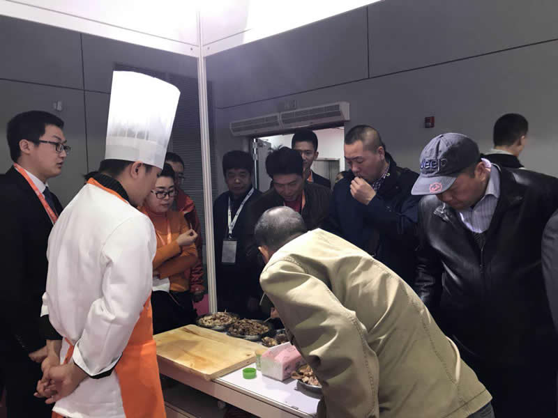 前來(lái)參觀的客戶正在試吃用”隆泰“香精系列制作的鹵制品,都贊不絕口!